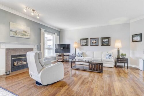 At the heart of the home is a chef’s kitchen featuring sleek stainless steel appliances, quartz countertops, and a breakfast bar that’s perfect for both cooking and entertaining. The primary bedroom offers a private oasis with a spacious walk-in closet, elegant ensuite, and charming bay windows that add a touch of sophistication.